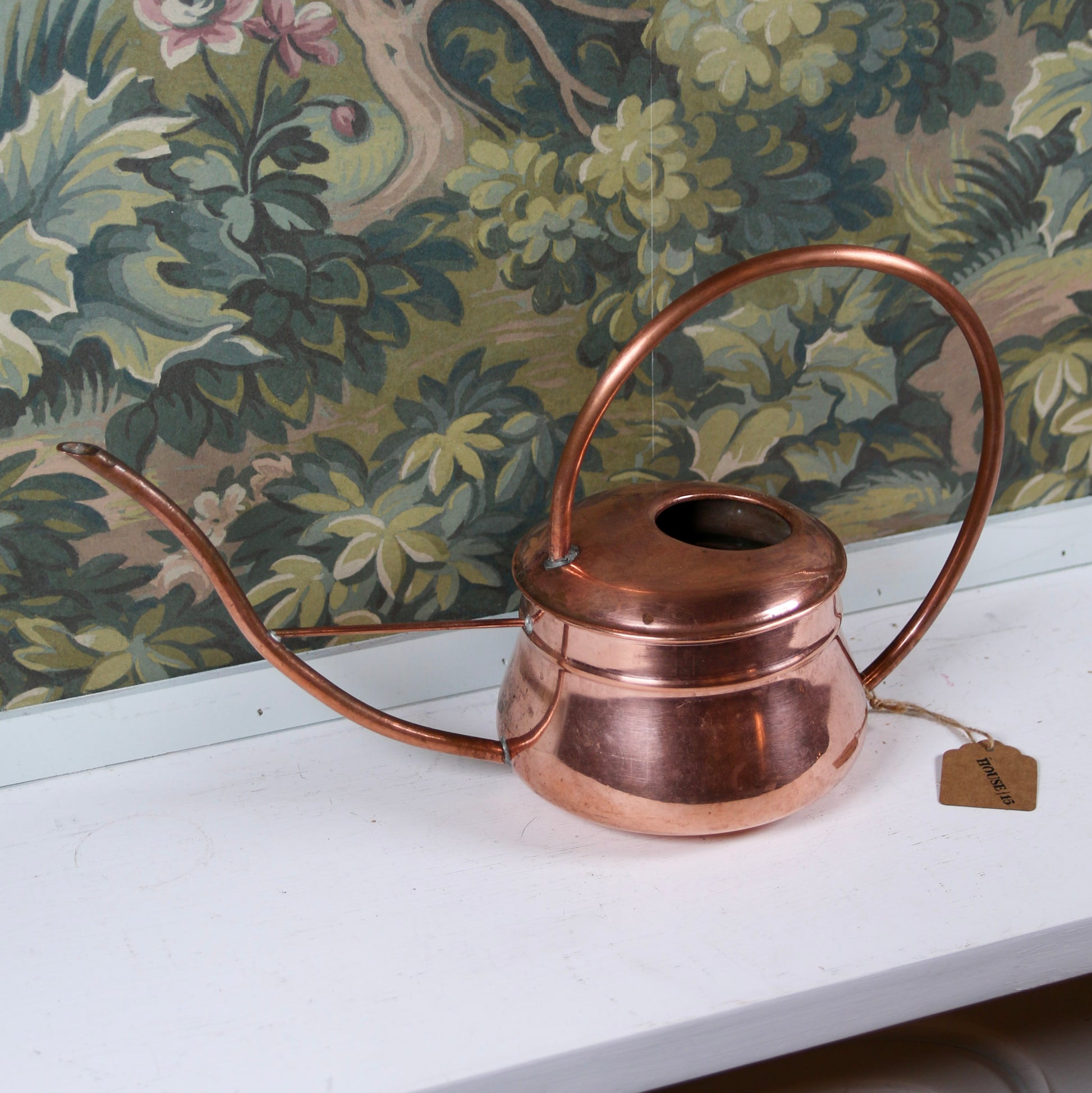 A functional copper watering can with warm tone and graceful shape. Beautiful for watering or as a decorative accent. Measures 13.5x8 inches.