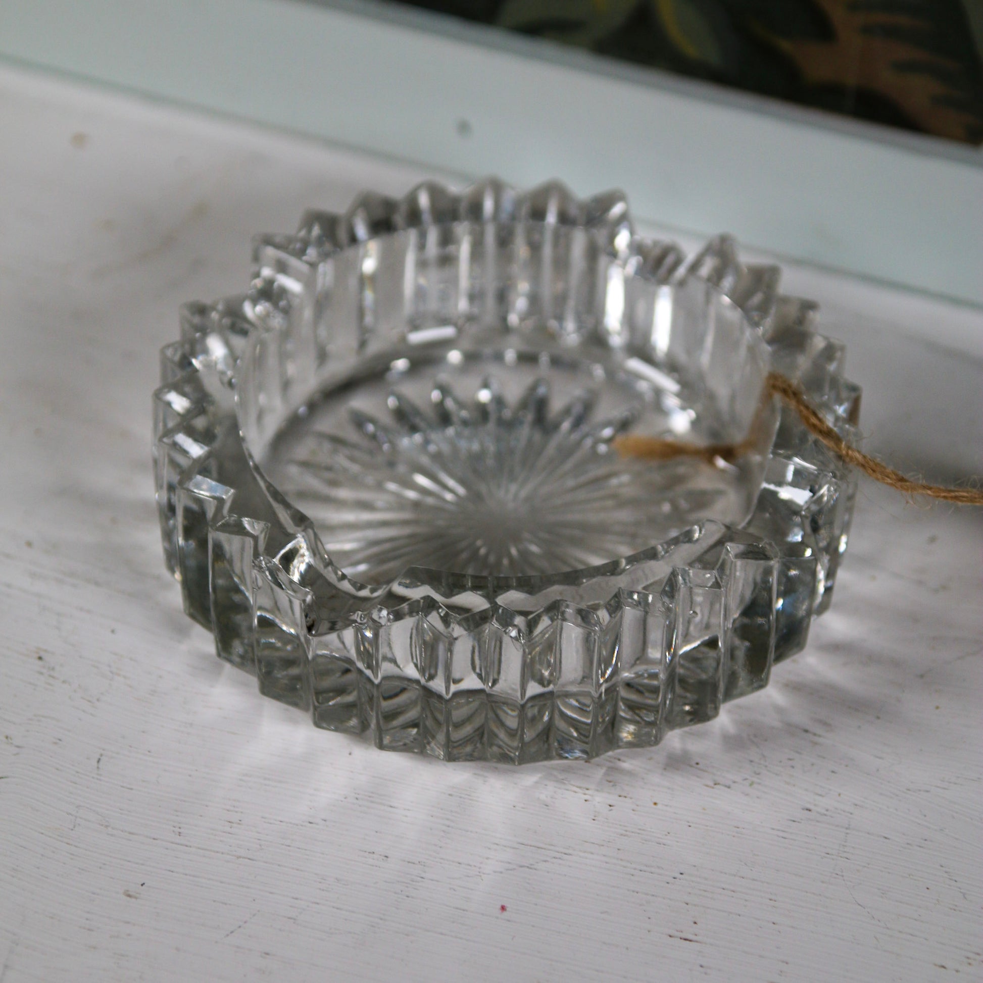 Elegant crystal ashtray with a heavy feel and sparkling cut. Measures 4 inches.