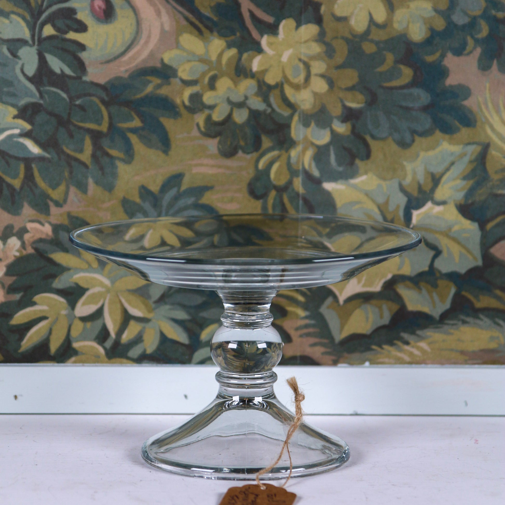 A petite glass pedestal—just the right size for a muffin, candle, or trinket display. 7.5 x 4.5-inch