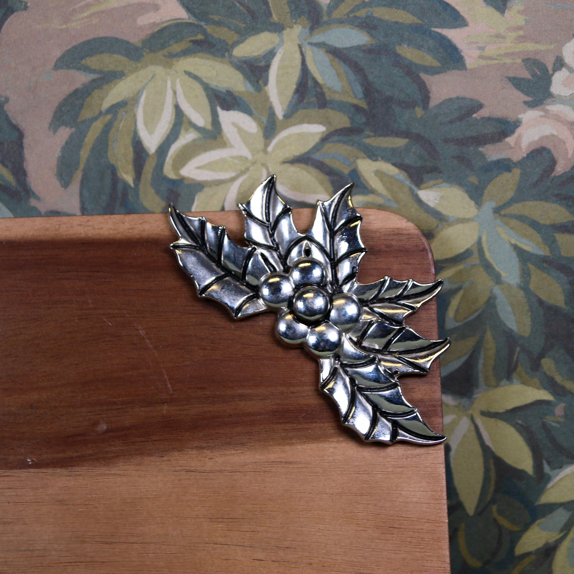 A small cheeseboard decorated with holly leaves for holiday hosting. Measures 11 x 6.5 inches.