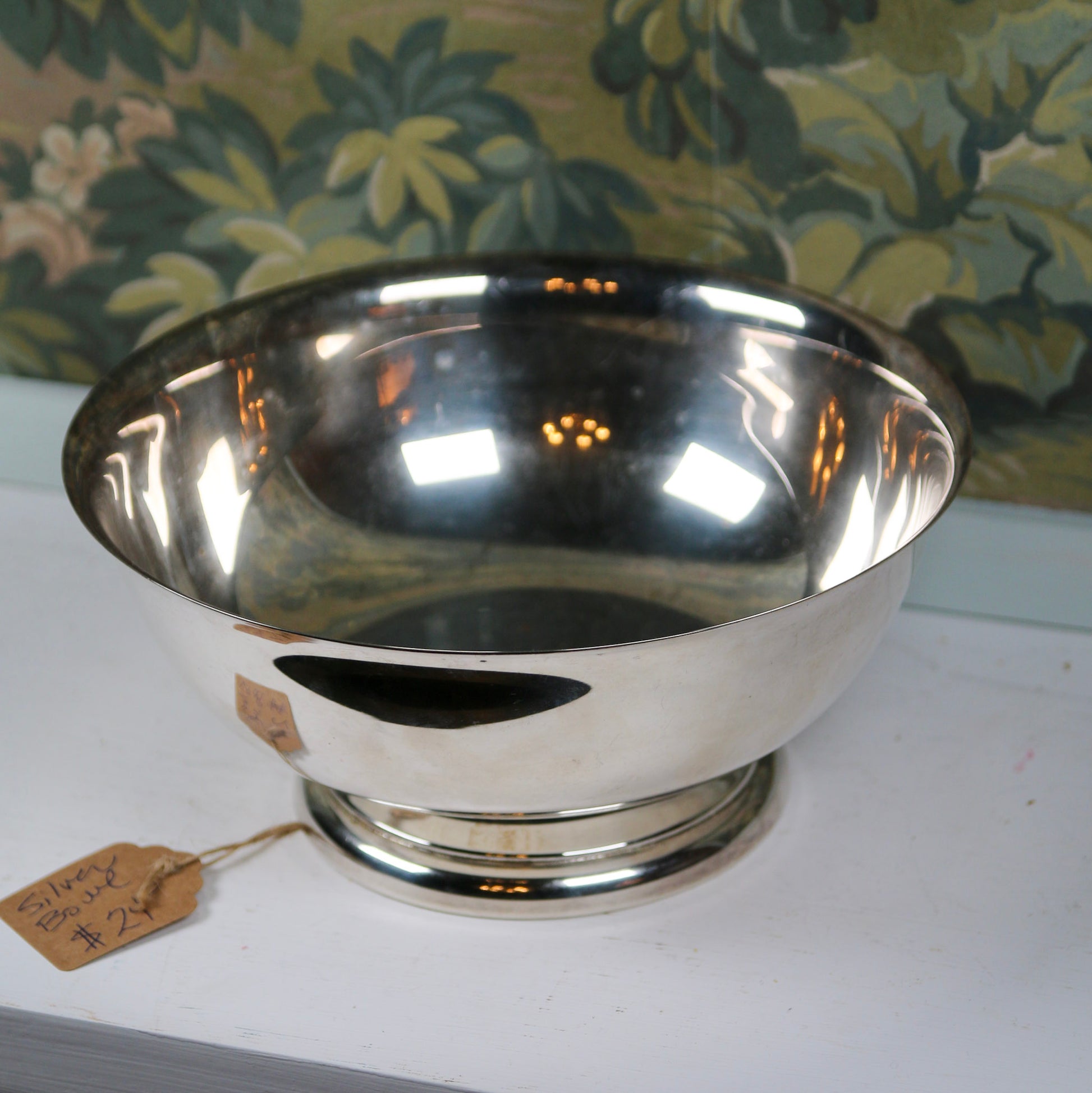 Polished silver bowl that adds shine to your table or vanity. Measures 4x8 inches.