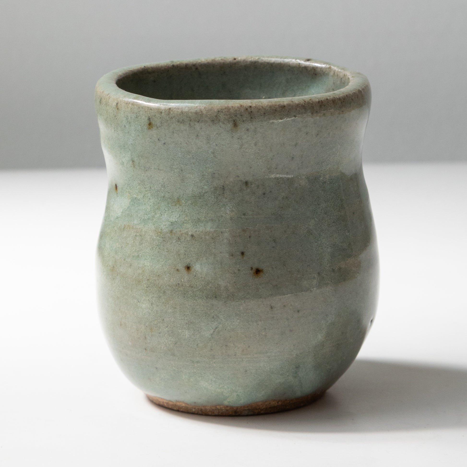 This jade 3 x 3.5-inch pottery utensil cup is a petite but practical addition to any kitchen. Its rich green glaze adds a subtle pop of color, perfect for holding small utensils, brushes, or even a handful of fresh herbs.