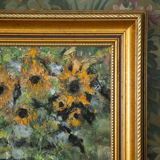“Sunshine Blooms” Vintage Still Life Oil Painting in Flowers, Vibrant Yellow Background