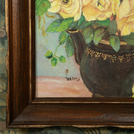 “Golden Petals” Vintage Yellow Rose Still Life Oil Painting