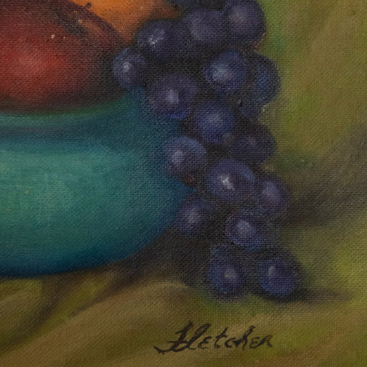 “Candlestick Harvest” Vintage Fruit Bowl and Candlestick Still Life Oil Painting
