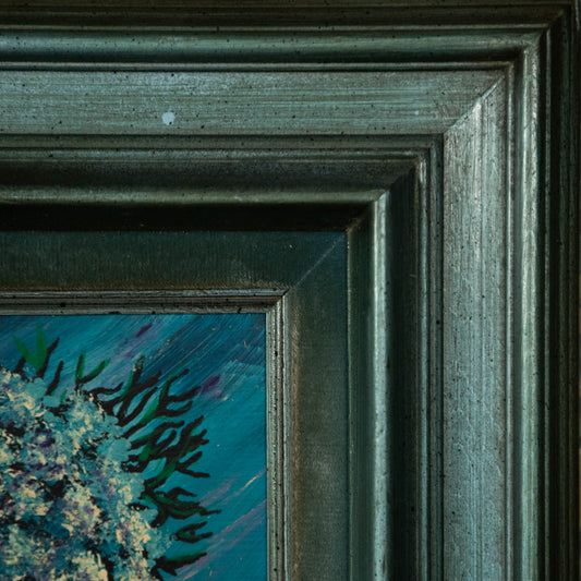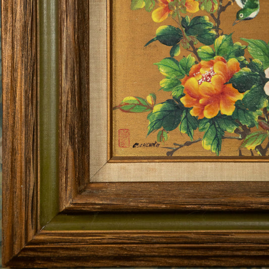 “Hummingbird & Florals” Vintage Oil Painting, Framed