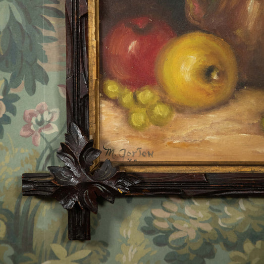 “Ornate Still Life” Vintage Still Life Oil Painting on Board, Ornate Carved Frame