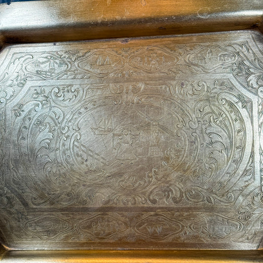 Vintage Brass Etched Serving Tray